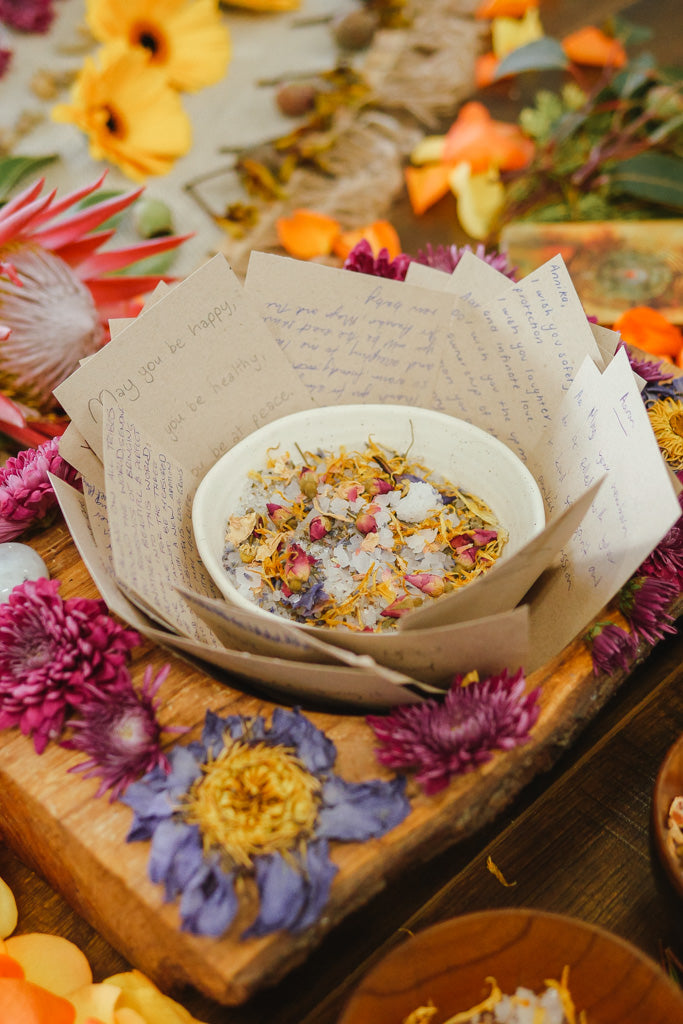 - Your tribe can partake in creating a Bath Salt blend for you to use and soak up all the goodness the salt absorbs from the love in your ceremony.