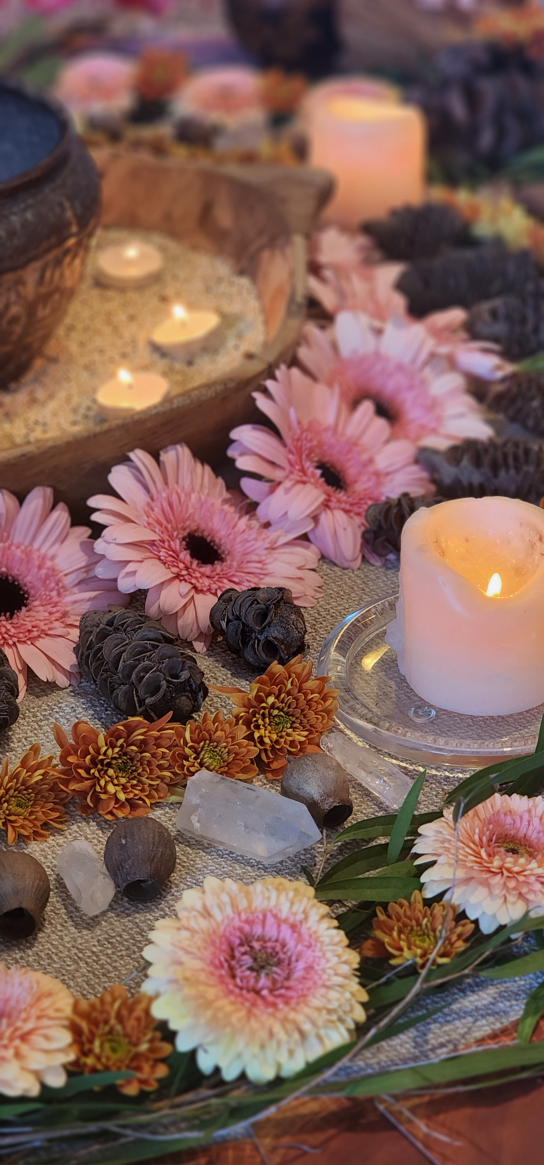 The container I hold is sacred, rooted in Shamanism, Animism, and deep reverence for the Earth and her guides. We begin by calling in the elements, our altar, and our intentions, creating a space where you can feel safe to express whatever arises.